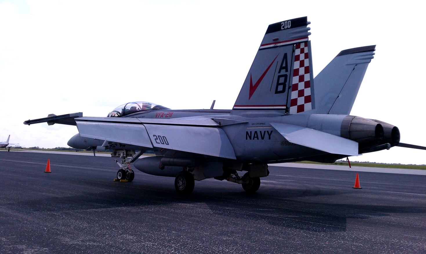 A Boeing F/A-18F Super Hornet from VFA-211 at work a few days ago. Normally, a three or four year old jet doesn't look quite so worn in, but that tends to happen while out on a six month cruise....while taking on Somali pirates and Libyan despotism. Note the ATFLIR pod under the left air intake.